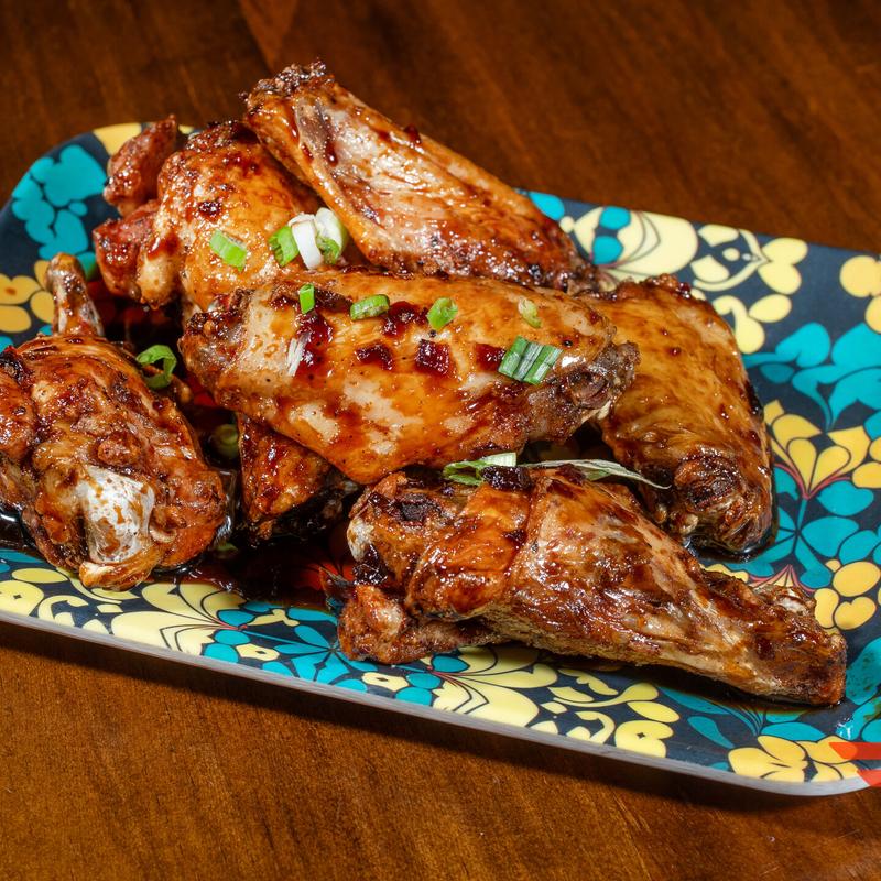 Double-cooked wings tossed in our Filipino adobo glaze: savory soy, vinegar, garlic, and black pepper with a sticky finish. Crispy, bold, and addictive.
